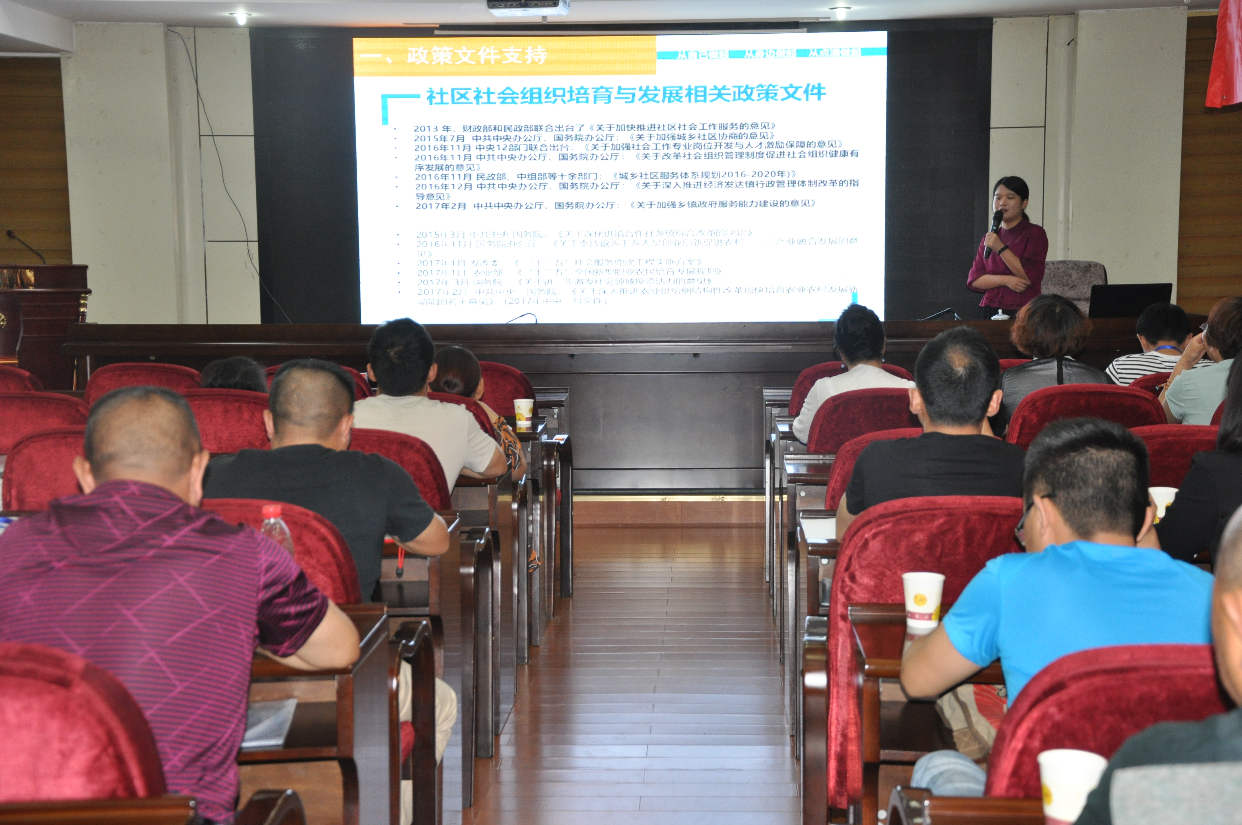 图:贺晓淳为学员做“乡村社区社会组织培育和发展”专题培训