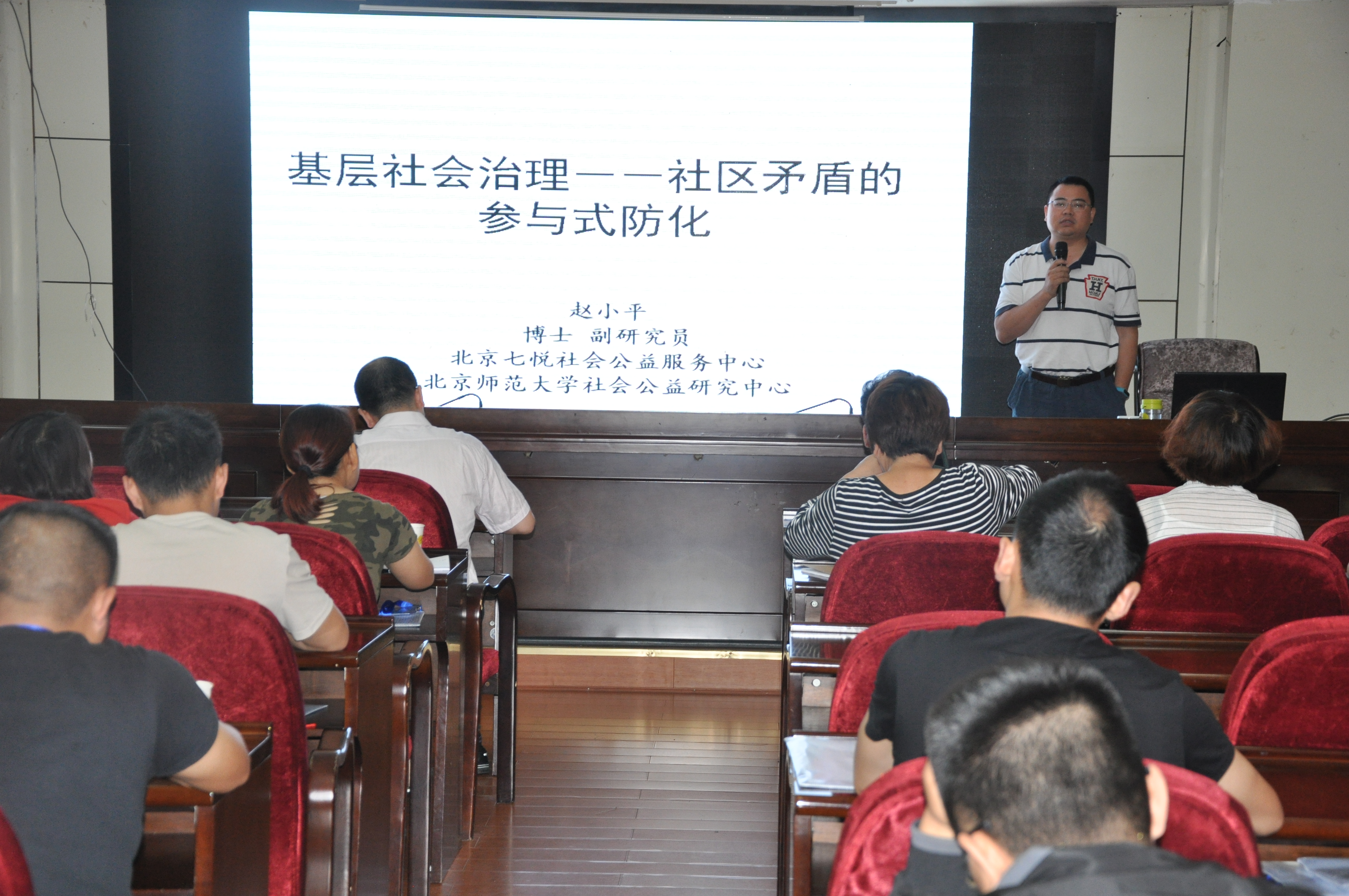 图:赵小平为学员做“基层社会治理——社区矛盾的参与式防化”专题培训