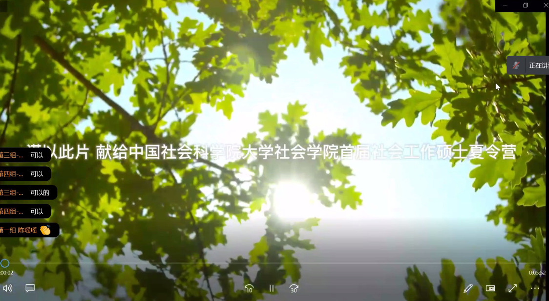 7月9日下午,四位社会工作硕士研究生参加社会工作专业分营交流,作为曾经的推免生,介绍了当初选择社科大的原因、在校期间的收获、目前的状况,就营员关注的学习、实习、科研、生活相关的问题做了解答,使营员们感受到我校的温暖氛围。
