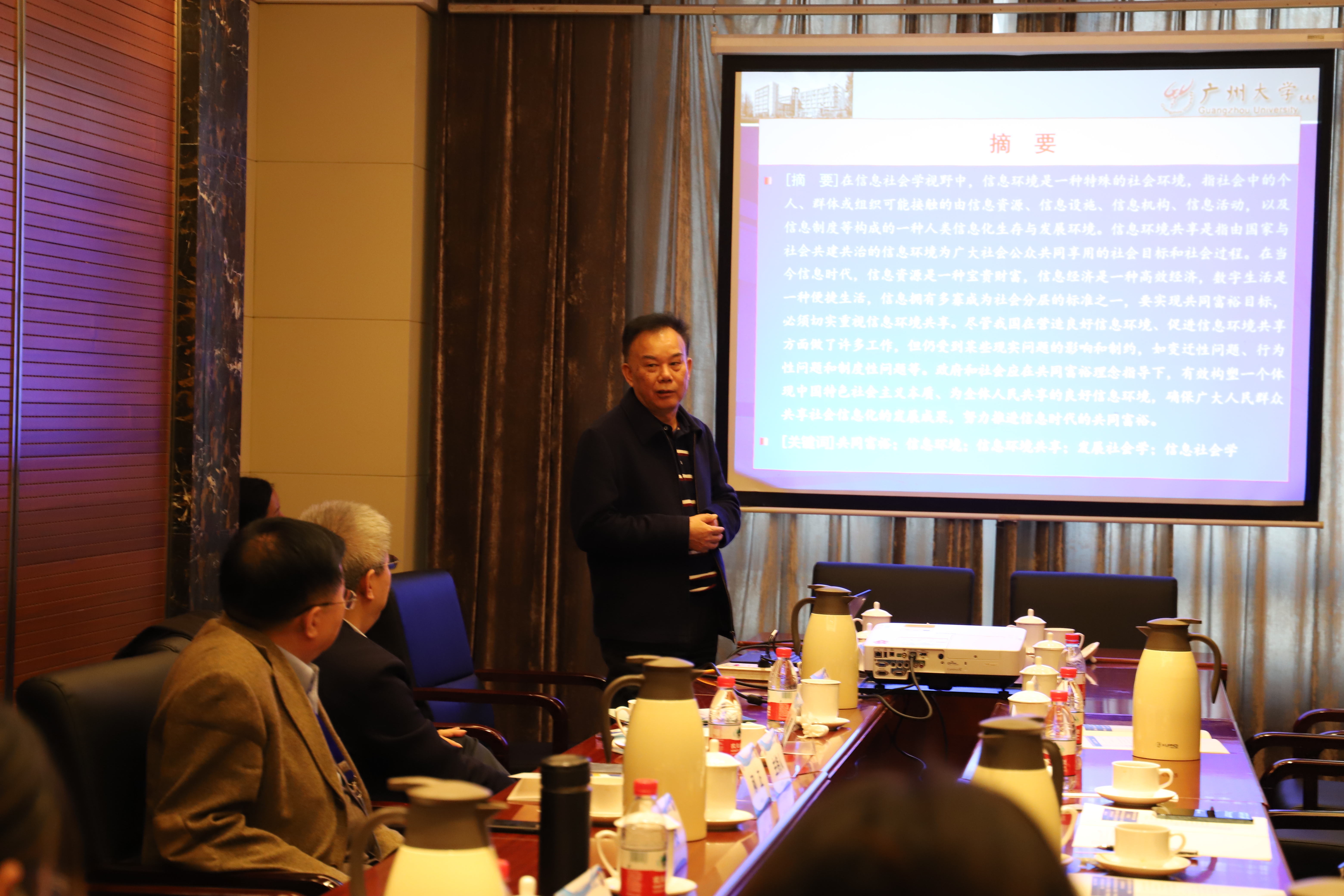 社会创新研究中心主任谢俊贵教授以“基于共同富裕理念的信息环境共享探论”为主题进行了发言。谢俊贵教授首先在回顾了国内外相关研究的基础上解释和定义了信息环境和信息环境共享这两个概念,提出信息环境是一种特殊的社会环境,是由信息资源、信息设施、信息制度等构成的一种人类信息化生存与发展环境,信息环境共享则指由国家与社会共建共治的信息环境为广大社会公众共同享用的社会目标与社会过程。接下来谢俊贵教授指出,当前信息化发展存在非均衡性,信息分配存在不平等,因此要推动信息环境共享,助力共同富裕的实现。他认为,二十多年来我国在信息环境共享方面做了许多工作,取得很多成绩,但是还存在一些问题。所以未来更应加强信息基础设施建设,强化公民信息意识,促进国民信息素养提高,完善信息法规工作,开展信息共享技术开发,推动信息共享的发展。