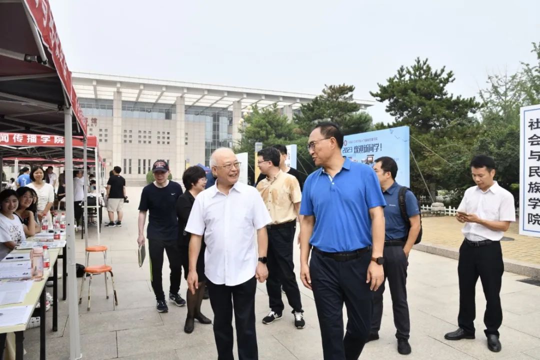 报到期间,副校长、研究生院院长王新清,副校长张树辉来到迎新现场,与2023级新生亲切交谈,并对迎新工作人员的付出表示肯定。