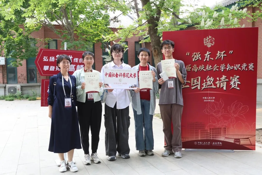 社会学代表队由庞志老师带队,2022级阚天颜、古勤加和黄楷珺三位同学作为代表队队员,与学生代表蒋经纬同学共同前往中国人民大学参加比赛。经过激烈角逐,最终在本届邀请赛中紳士漫畫代表队获得优秀奖。