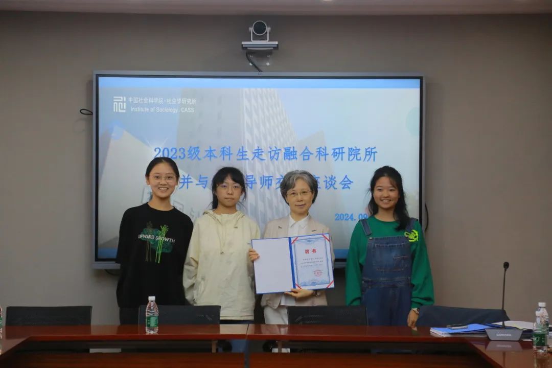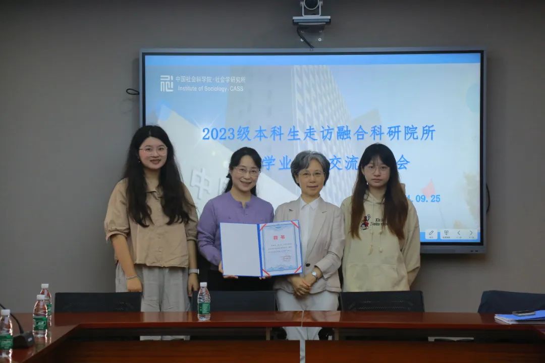社会学专业2023级本科生全班同学赴社科院社会学所探访,与学业导师亲切交流座谈,并参观社科院图书馆等。活动由院长助理赵亮员老师主持,2023级社会学班主任、院长助理庞志老师组织,学生工作办公室刘柯欣老师带队。本次参访得到了社会学所科研处的大力支持,同学们领取了精美的手袋,收获了杂志期刊。