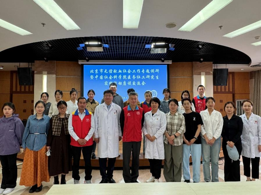 副院长李原及社会工作硕士研究生一行前往血液中心,就“北京市无偿献血社会工作发展”展开座谈。双方围绕无偿献血科普及社会宣传进行了深入交流,并就下一步在社会工作领域的科研教学合作达成共识。