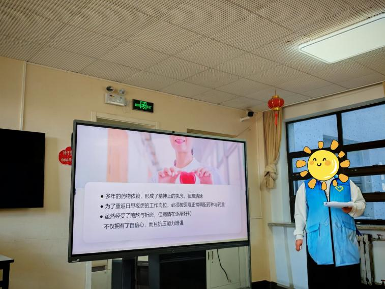 一位双相情感障碍康复志愿者分享了他的家庭背景和成为志愿者的心路历程。其中一个故事深深触动了在场的每个人:他的家庭很简单,多年来一直与年迈的父亲相依为命。但在一次住院治疗期间,老父亲不幸摔倒骨折,无法独自生活。他知道后心急如焚,尽管治疗周期尚未结束,他坚持要求出院,以便回家照顾父亲。面对这一困境,医院做出了一个充满人性化的决定——允许他的父亲一同住进病房,以便他在继续治疗的同时,也能照料自己的父亲。这一举措不仅体现了医院对患者家庭的关心和理解,也让他深感感激。康复后,他以志愿者的身份回馈医院,为同样饱受精神障碍困扰的患者提供服务。他的经历告诉我们,尽管疾病带来痛苦,但同时也是学习和成长的机会。分享结束时他富有哲理地说:“生活就是找乐子”,这仿佛是在提醒我们,即使在人生最阴暗的时刻,也要努力寻找属于自己的光明。