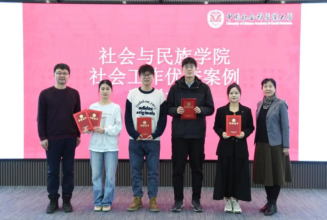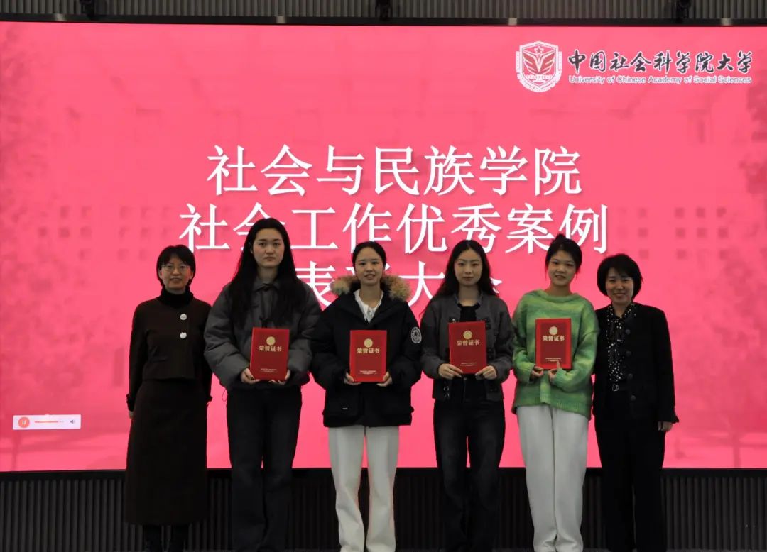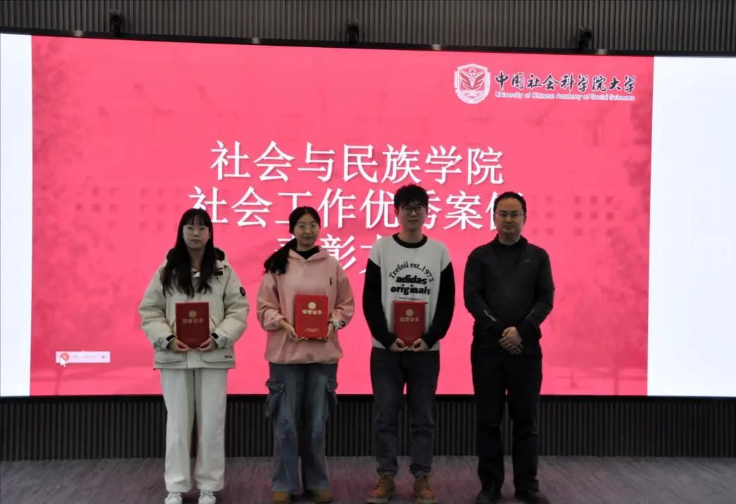 社会工作优秀案例一等奖、二等奖、三等奖的学生名单(具体名单附后),各组同学先后上台领奖,并与颁奖的领导和老师合影留念。