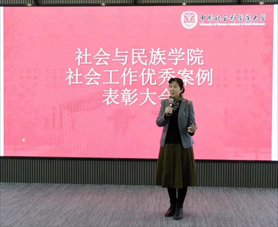 颁奖结束后,赵一红教授做了大会总结。她首先对踊跃报名参加社会工作案例大赛的各位同学给予肯定,赵老师表示,各组获奖案例内容丰富,类型多样,有创新,有亮点,体现出较高的专业性,展示了中国社科大社会工作硕士的风采;同时,赵老师对明年的社会工作案例大赛给予更高的希望,希望同学们能够再接再厉,创造社科大在全国社会工作案例大赛的新辉煌!