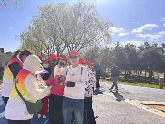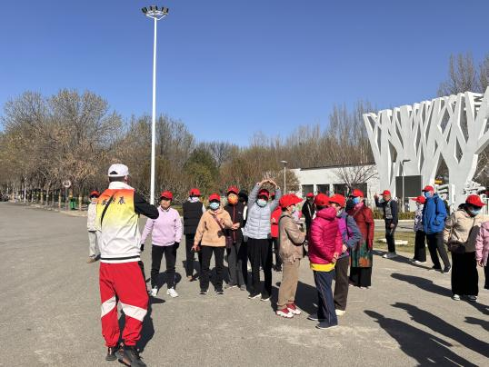 活动伊始,长阳公园内热闹非凡,参与的村民头戴小红帽,身着红马甲,形成了一道亮丽的风景线。村民在工作人员的引导下进行了创意签到,大家纷纷留下自己的足迹,为活动增添了一份独特的纪念。随后,热身运动环节,工作人员带领大家做了一系列简单而有效的热身动作,让身体迅速进入状态,为接下来的健步走做好准备。