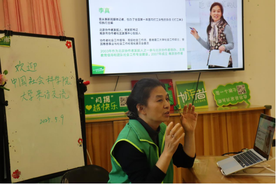 在协作者工作人员的热情迎接下,同学们踏入了协作者位于东四七条的小院。参观环节原计划让大家实地感受协作者的活动环境,但恰逢雨天,大家围坐在一起,从纪录片中开始领略协作者的魅力。镜头里闪过的,是协作者多年来在服务农民工、流动儿童等弱势群体中的点滴瞬间,是无数志愿者与社会工作者辛勤付出的身影,也是那些在困境中重拾希望的人们的笑脸,每一帧画面都在诉说着协作者的使命与担当。纪录片结束后,便是深入了解协作者与社会工作的核心环节。北京协作者的资深社会工作者为同学们带来了一场精彩纷呈的分享。