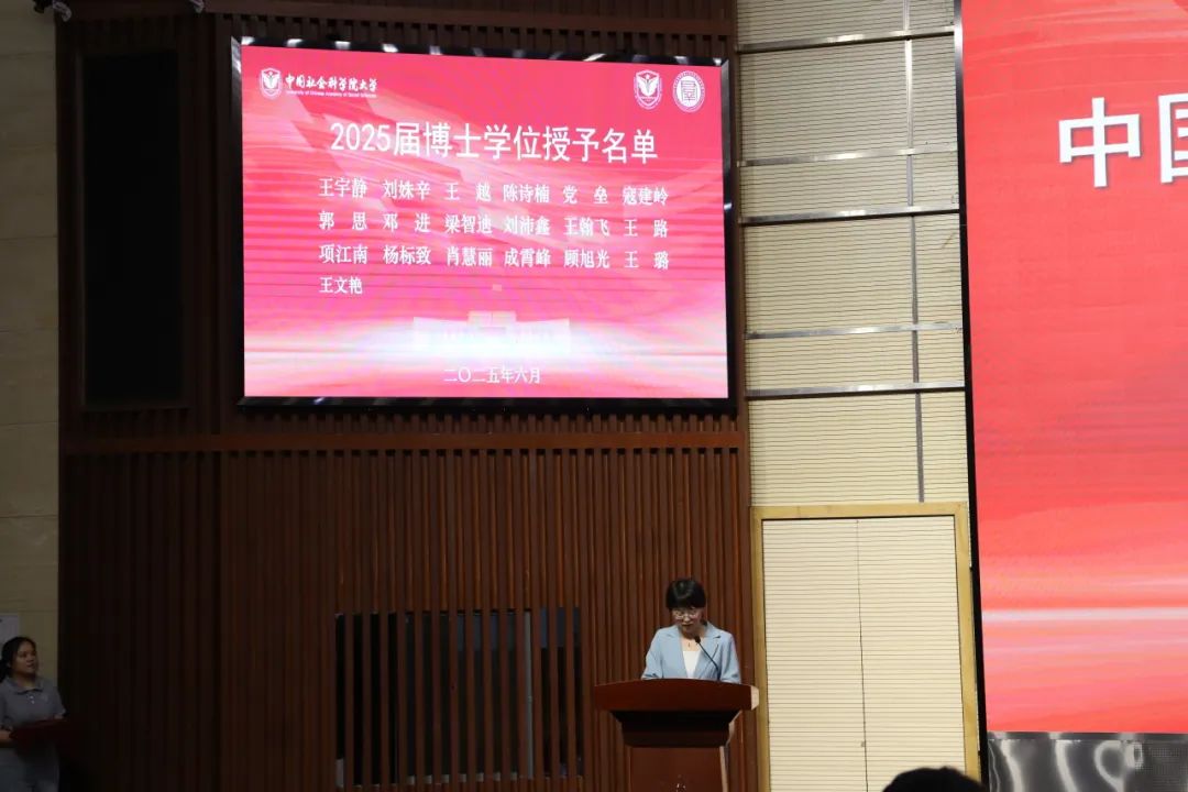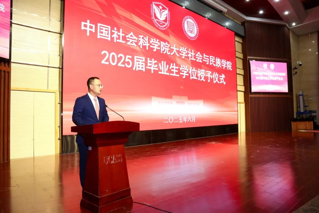 民族学与人类学研究所副所长、博士生导师丁赛教授发表了题为《奔赴山海,迈向更广阔的田野》的深情寄语。她向全体毕业生顺利毕业表示热烈祝贺。丁赛教授回顾了同学们在科教融合特色下,沉浸于中国哲学社会科学前沿“学术田野”的成长经历,汲取丰厚学术滋养,锻炼了独立思考能力。临别之际,丁赛教授向毕业生提出三点殷切嘱托:为学当有“情怀”,即胸怀家国、体察社会、铸牢中华民族共同体意识;为学当有“思想”,即立足国情、追问真理、拒绝搬运西方理论,发出中国声音;为学当有“风骨”,即坚守学术尊严、诚信立身,保持内心的笃定与对真理的敬畏。她勉励毕业生带着社科大的烙印,运用所学知识、同理心与想象力,在更广阔的“社会田野”中探索、理解、行动、关怀,书写无愧时代的精彩篇章。
