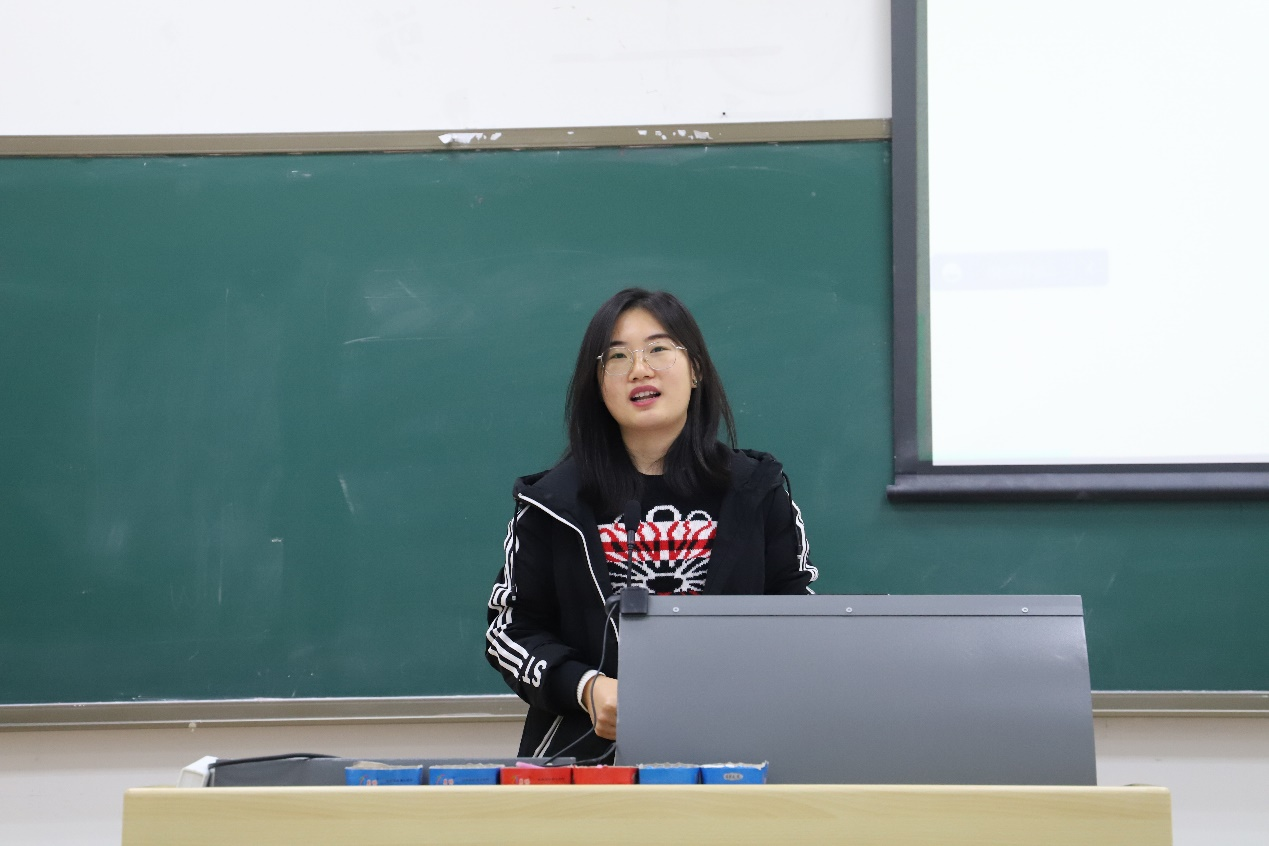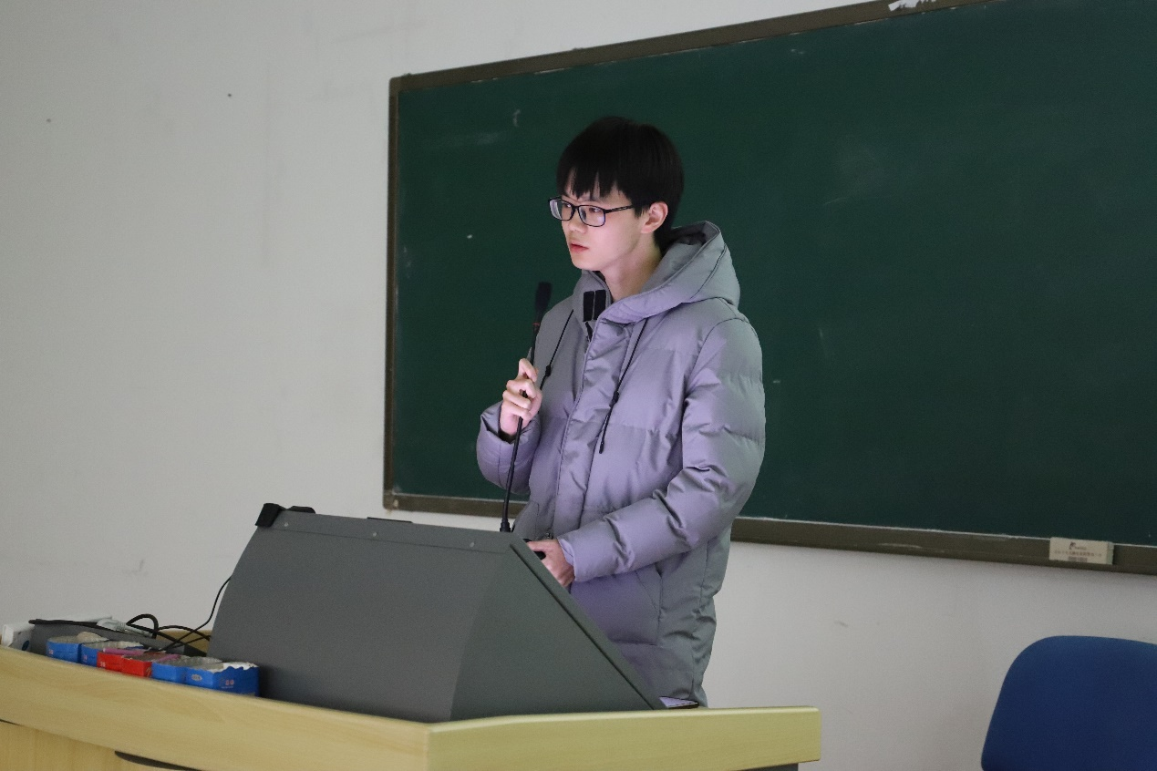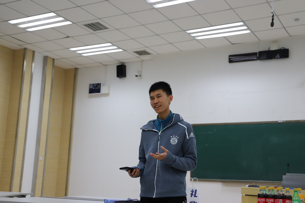 游戏后进入了交流会的中场环节,也就是交流环节。20级的杨绪炜同学和19级的许宇童同学先后上场,分享经验。许宇童同学的分享聚焦在如何度过大学的学术生活;杨绪炜同学分享的经验则涉及到大学生活的更多方面。她们的介绍深入浅出,回答了同学们学习生活中的现实问题。