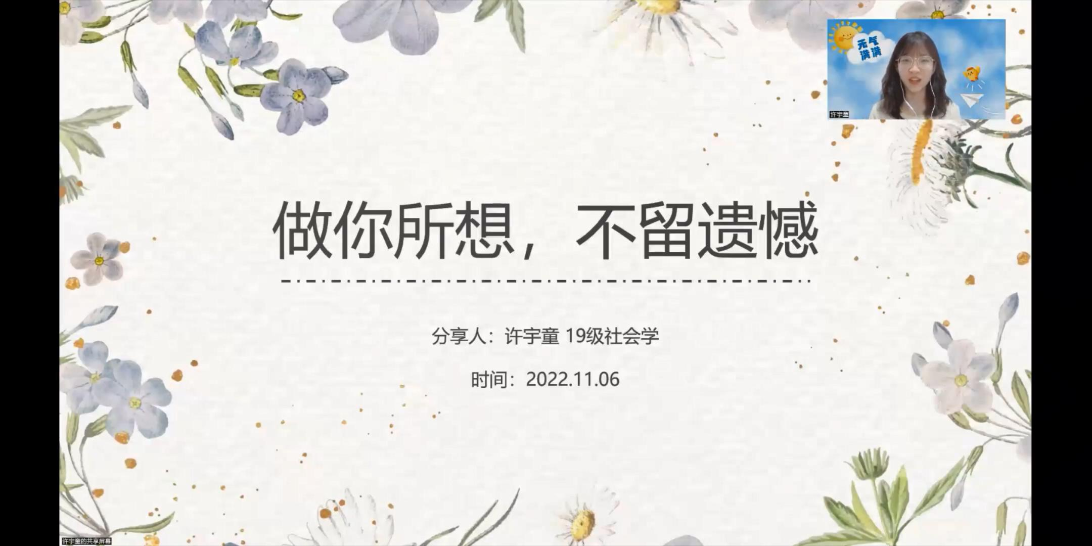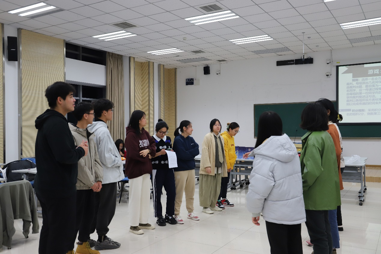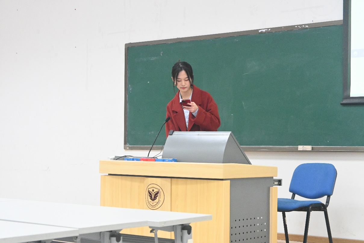 游戏后进入了交流会的中场环节,也就是交流环节。20级的杨绪炜同学和19级的许宇童同学先后上场,分享经验。许宇童同学的分享聚焦在如何度过大学的学术生活;杨绪炜同学分享的经验则涉及到大学生活的更多方面。她们的介绍深入浅出,回答了同学们学习生活中的现实问题。
