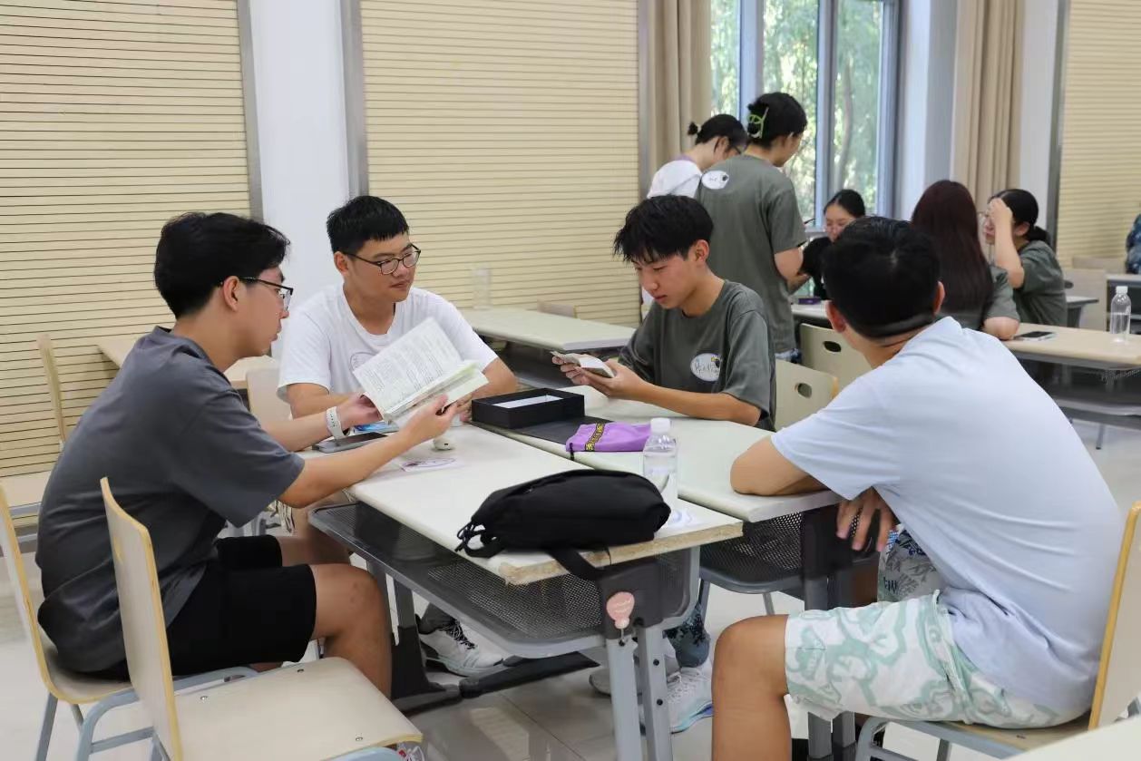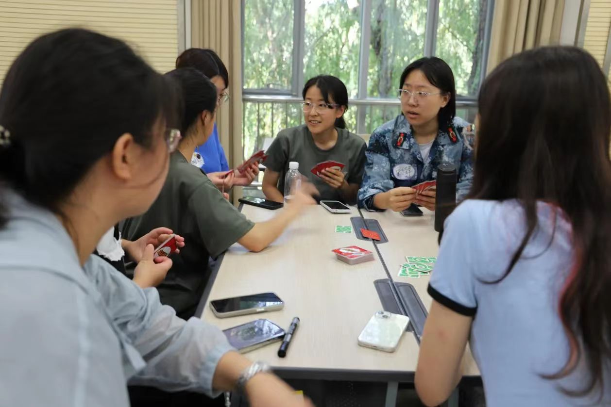 经过短暂的休息后,同学们按照各自的兴趣自愿结成小组,一起进行卡牌游戏。
