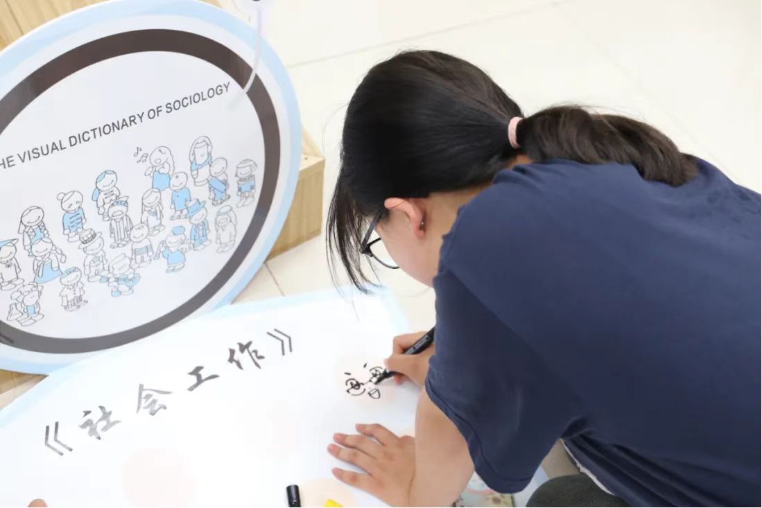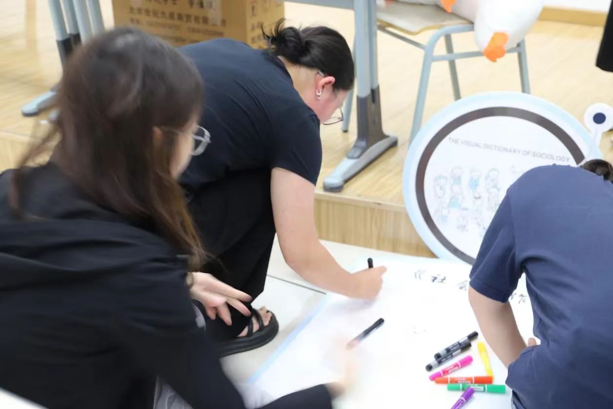 第二天,同学们首先按照不同的专业在形象板上绘制了自己的卡通形象。
