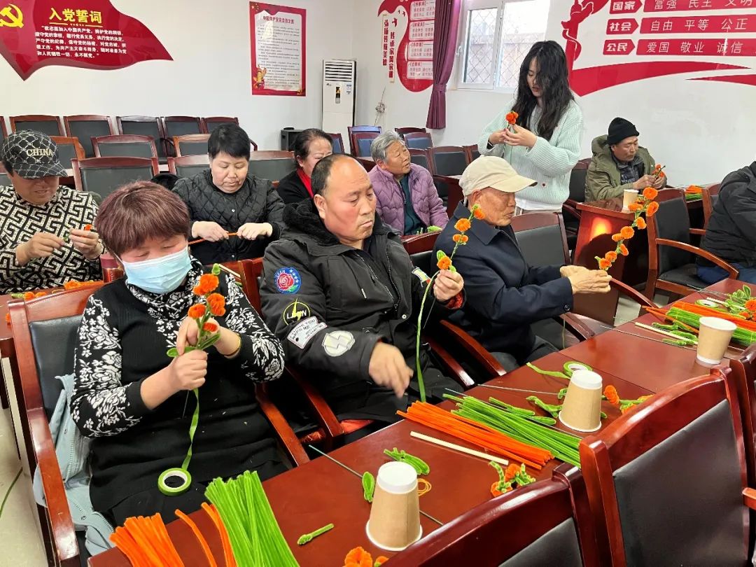 2025年1月14日下午,为丰富周庄村老年人的精神文化生活,乡工项目组社工联合周庄村乡工一同为老人们开展了一场生动有趣的“柿柿如意”手工花制作活动。此次活动不仅让老人们体验到了动手制作的乐趣,更让他们在欢声笑语中迎接新年的到来。