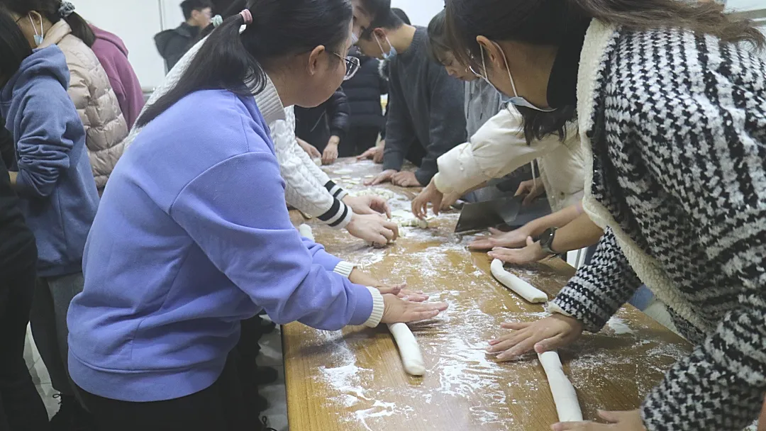 现场气氛热烈,同学们都按时到场,郑玲老师和张天帅老师也到场与同学们一起参与,包饺子活动在愉快而欢快的气氛中开始。