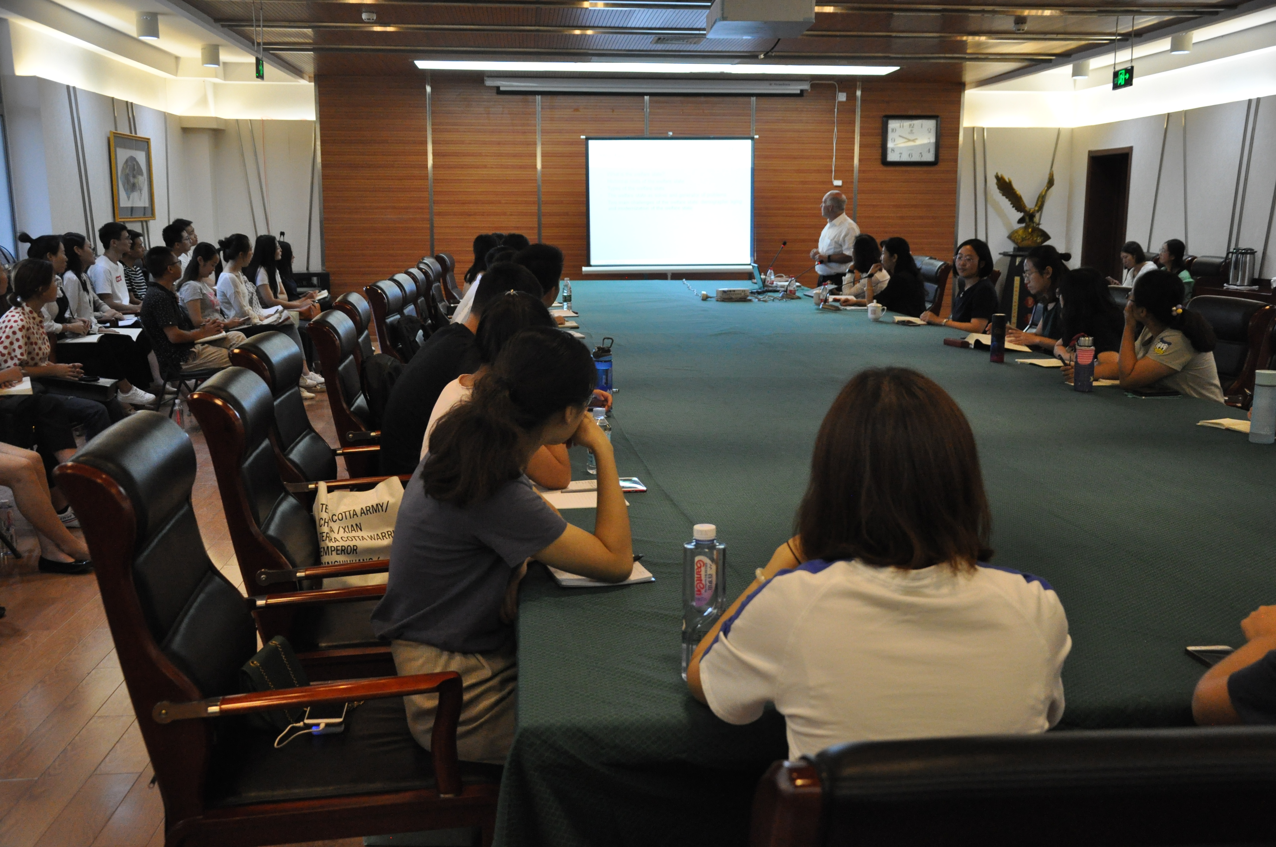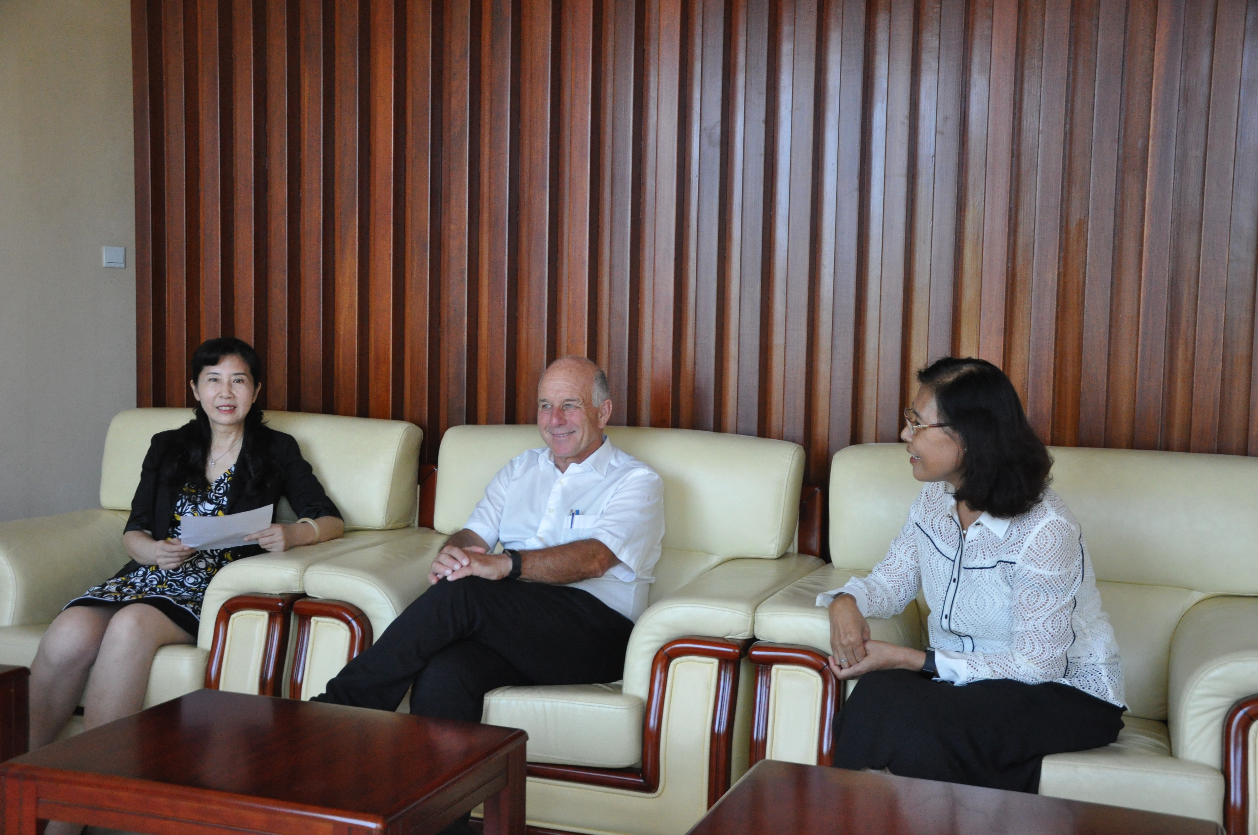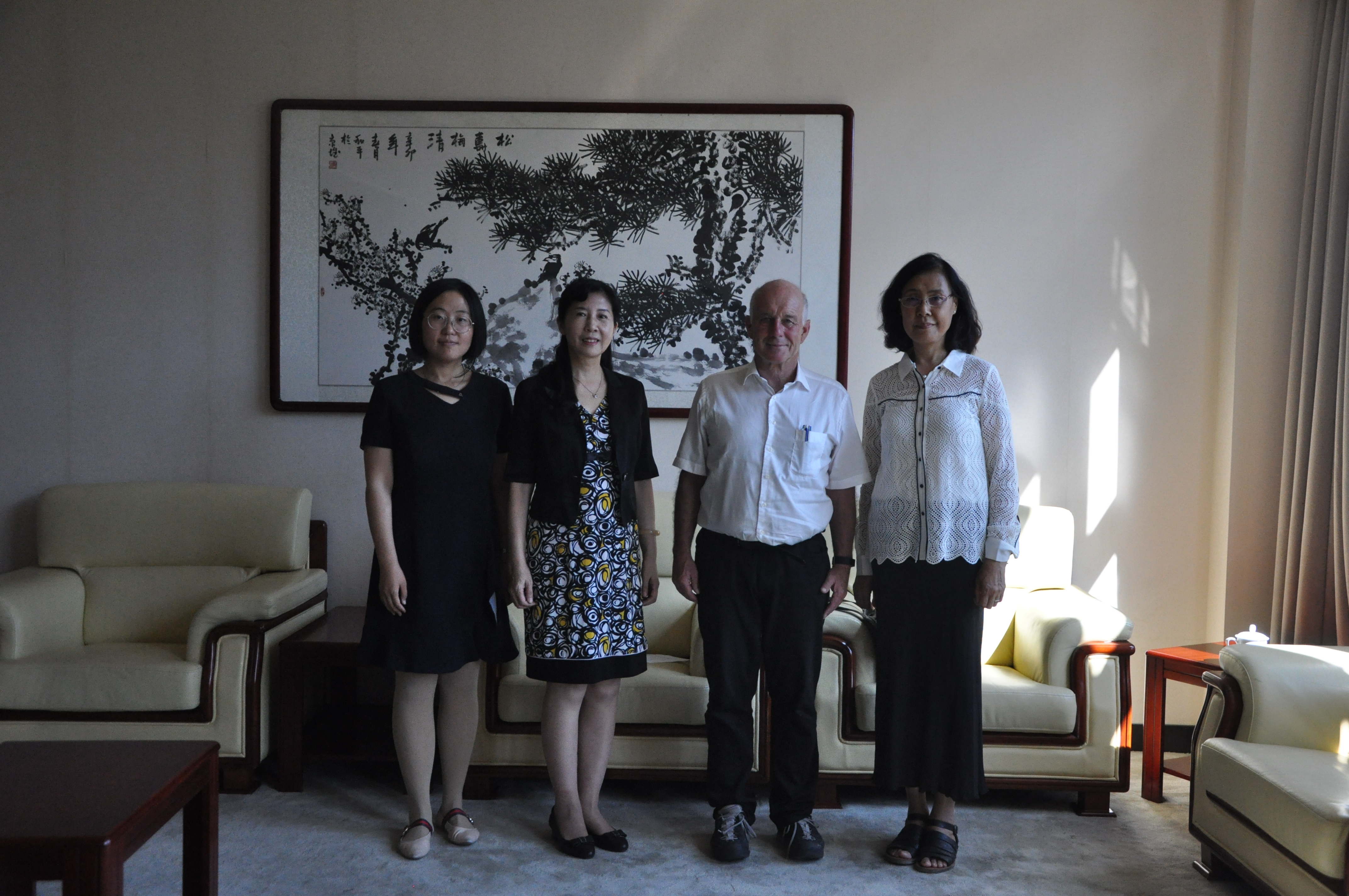 院长赵一红教授会见Klaus教授并主持讲座,潘屹研究员担任翻译。