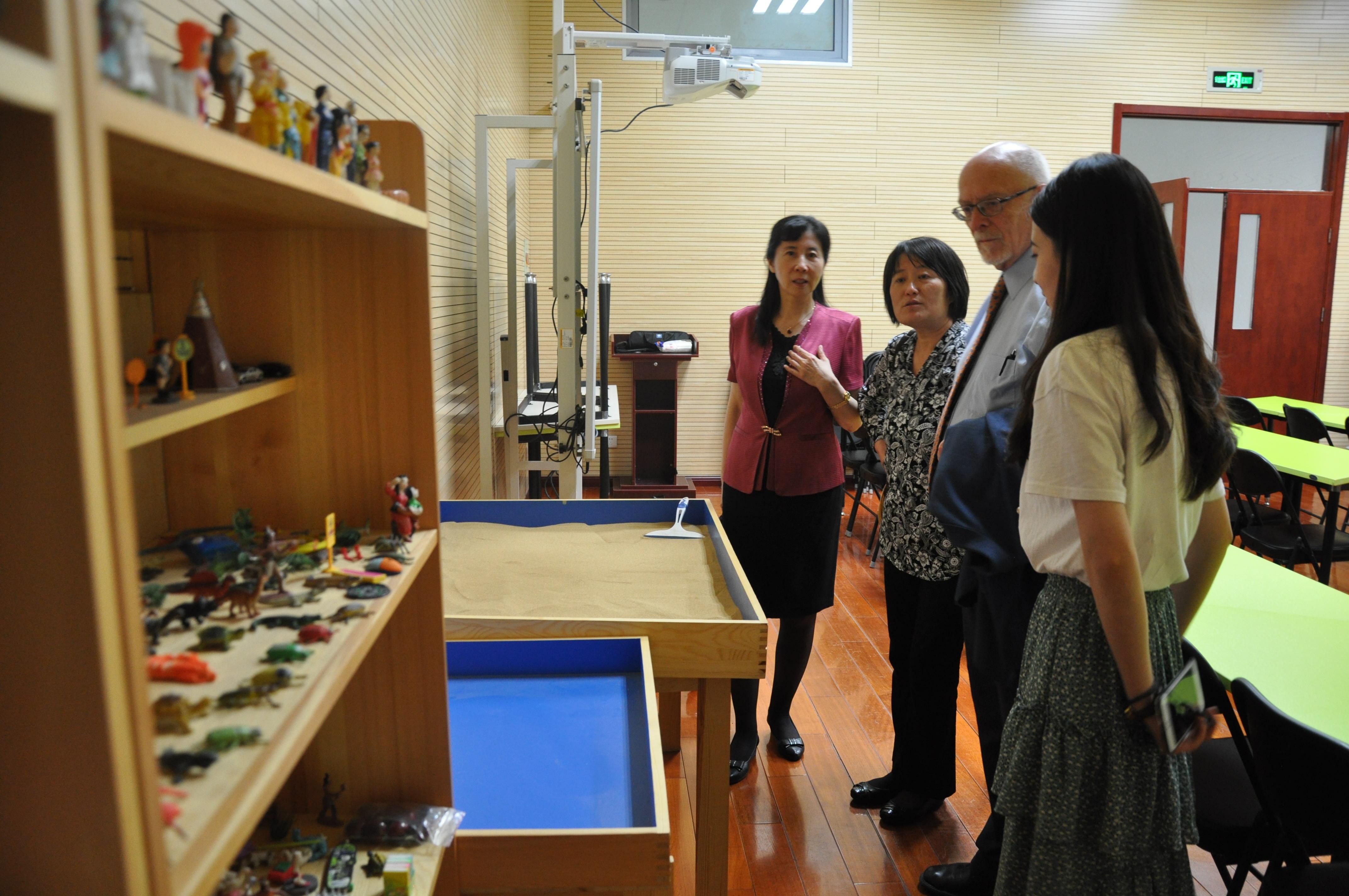 此外,赵一红教授带领两位美国教授参观了我校社工实验室,现场观摩沙盘模型、音乐治疗室、家庭治疗室等设备和场所,详细介绍了我校社会工作硕士开设的课程、专业实习以及毕业论文等情况,展示我校社会工作硕士教育的发展历程和科研成果。