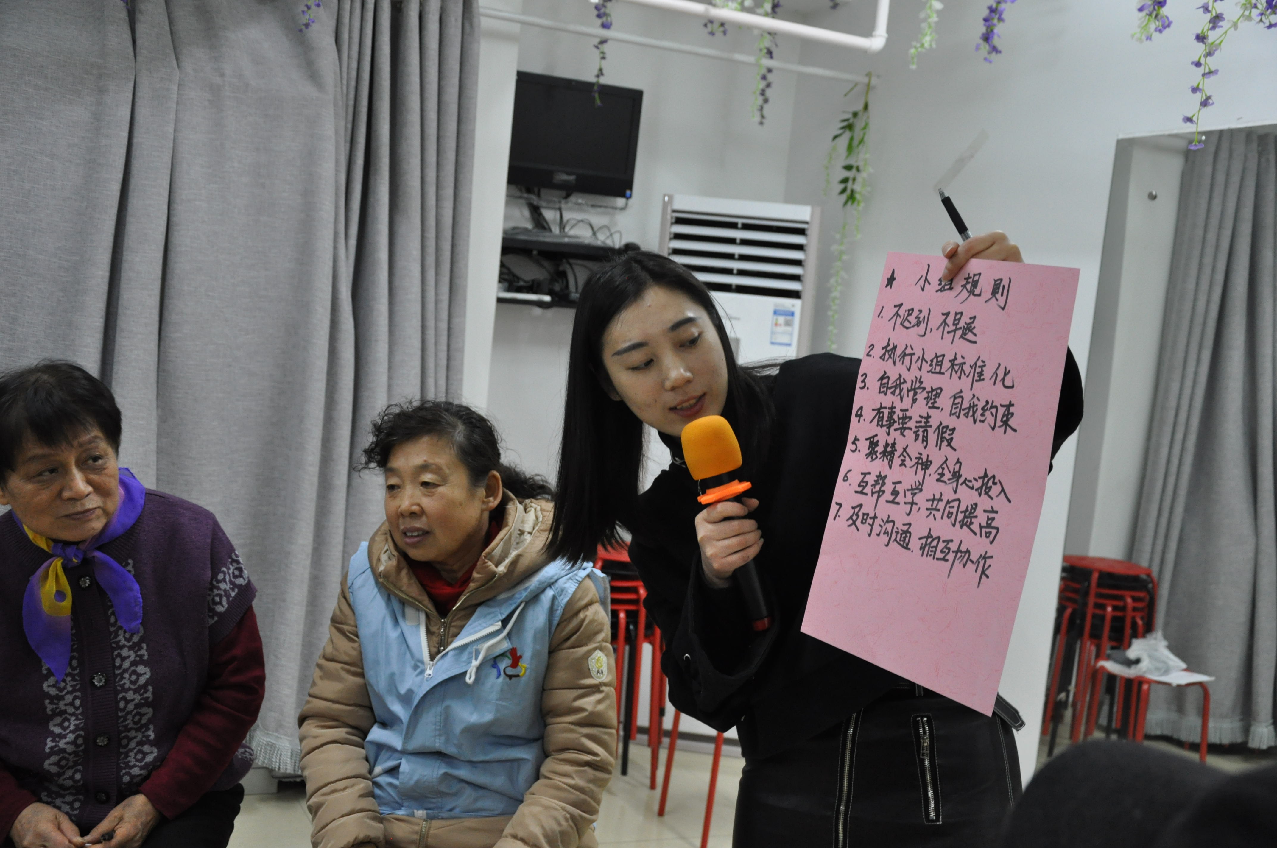 社工向大家展示共同制定的小组规则