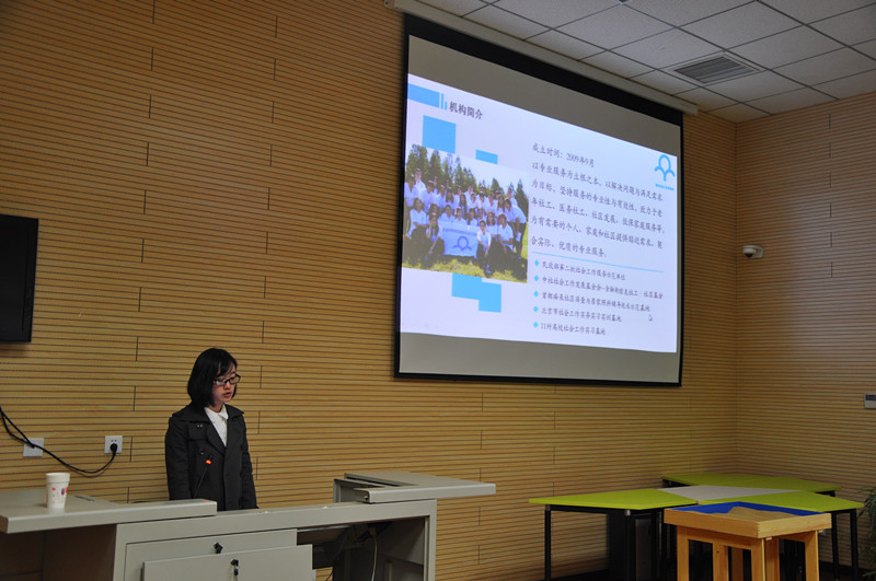 再次,李璐龄老师通过播放微电影的形式向同学们直接展示了其机构所服务的人群和一线社会工作者的工作。李老师强调,社会工作本身的实践性十分强,很多具体的实务技巧和操作是课本和教材中所没有的,要通过实际的服务和专业实习不断的积累经验,提高服务技巧和实务能力。