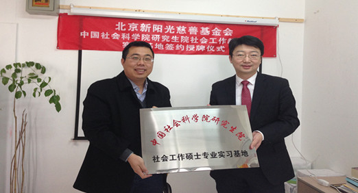 2013年12月12日,社工中心实习基地签约挂牌仪式在北京新阳光慈善基金会举行。上午10:30左右,社工中心副主任刘文瑞、社工实习管理老师郑玲受邀来到新阳光慈善基金会,与新阳光慈善基金会的理事长兼秘书长刘正琛、常务副秘书长郭露、行政人力资源主管孙常媚共同出席了签约挂牌仪式。