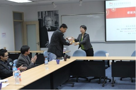 随后,同学们在会议室一同与张星进行交流。张星首先主讲基金会基本情况,包括基金会LOGO、理念,及各种执行项目,如创业培训、教育支持、孤儿救助、疾病防治、扶贫赈灾等等,其中张星丰富的介绍了基金会与彼得·德鲁克管理紳士漫畫