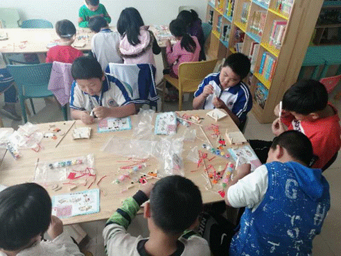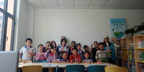 4:儿童手工小组组员展示制作好的国旗升降台