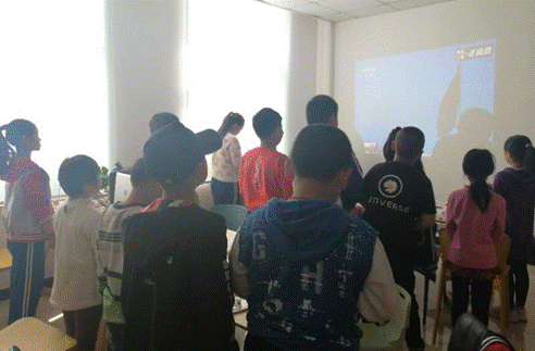 2:组员们观看升旗视频