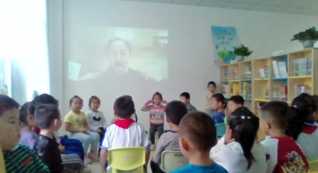 社工研究生任蕾通过隔空互动的方式,与留守儿童开展了课前游戏。生动有趣的破冰小游戏充分吸引了孩子们的兴趣,提升了他们的专注力,为接下来的高效学习打下了基础。