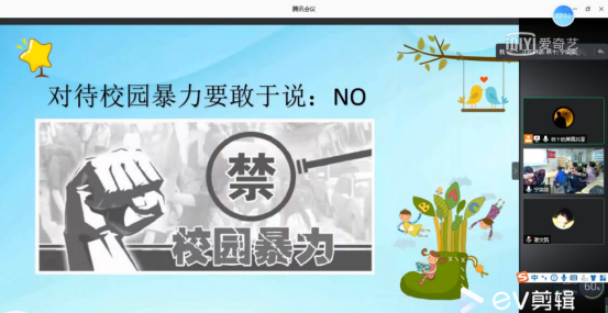 随后,孙梦华同学通过一组卡通图片,在保证不恐吓到孩子们的情况下直观地展示了何为校园暴力。孙梦华对所展示图片进行总结,归纳出校园暴力的表现形式和主要表现,帮助孩子们理解什么是“校园暴力”。