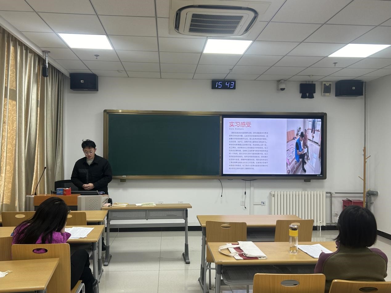 首先,郑玲老师向大家介绍了此次实习汇报会的基本流程、汇报内容、汇报时长和其他注意事项。本次汇报分班级分时段进行,两个班的同学分别根据学号顺序依次汇报。汇报内容主要包括五个方面:实习单位概况、实习内容、实习收获与成长、实习经验与反思、实习遇到的困难和特色。社工同学围绕这几个方面进行了深刻的总结和分享。