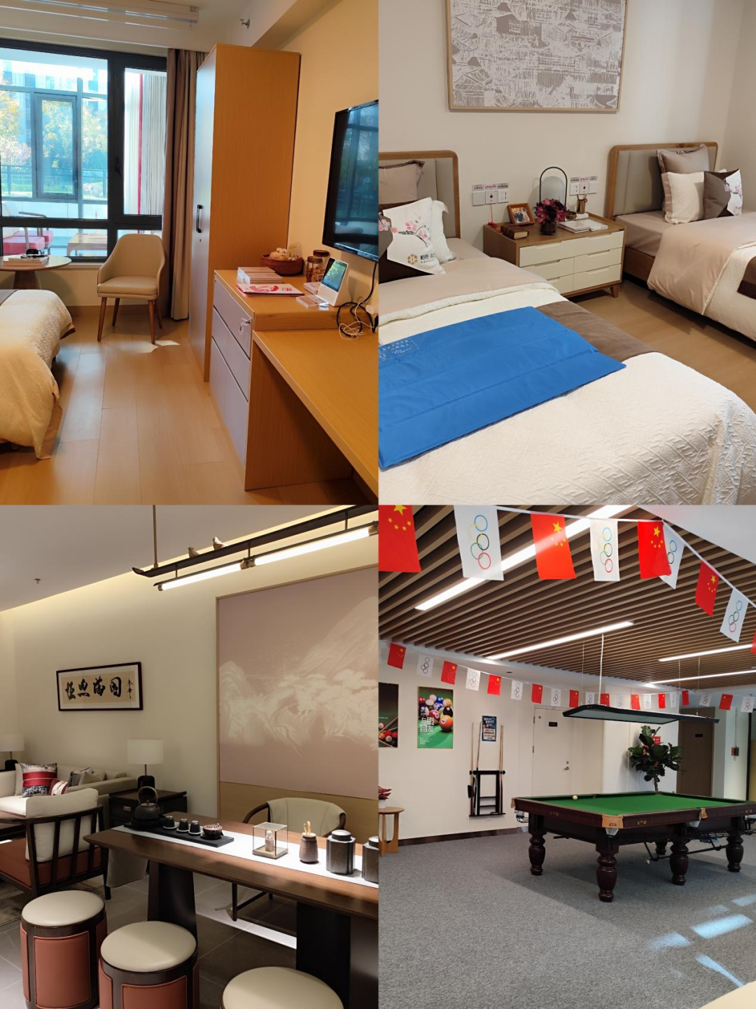 步入社区,温馨而雅致的社区环境映入同学们的眼帘。由恒煦满园项目人力王乐老师向同学们介绍了恒煦满园长者社区的基本情况,在王老师的带领下,大家先参观了恒煦满园长者社区供老年人居住的不同户型的房间:房间宽敞明亮,设施一应俱全,从空调到电视,从独立卫生间到紧急呼叫系统,均按适老化标准精心配置,打造安全舒适的居住环境;防滑地板、扶手、家庭病床等细节之处,无不透露出对老年人生活起居的深切关怀,场景布设融入中华传统文化元素,营造出文化温度与生活温情兼具的居住环境。