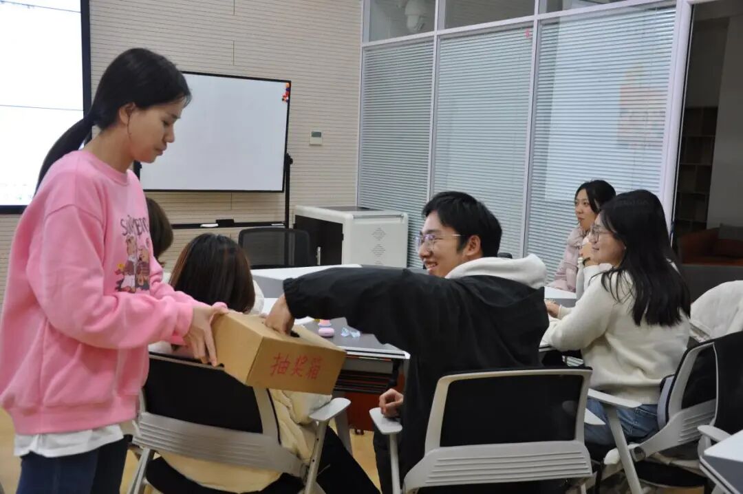 每部纪录片播放结束后,师生们随即展开深度交流。郑老师首先围绕影片内容设计了系列有奖提问,例如“影片中学校社工运用了哪些专业方法开展工作”“吴社工在干预张新轻生危机时联动了哪些人群与部门”等问题,引导同学们聚焦专业细节展开思考。同学们踊跃参与抢答,答对的同学获得抽奖机会,赢得了笔记本、订书机等精美奖品,现场洋溢着收获的喜悦。随后,各小组围绕“你对学校社工职业有何新认识”“如何设计活动增进居民对社区矫正工作的理解”等议题展开深入讨论,在交流中深化了对社会工作专业的理解。