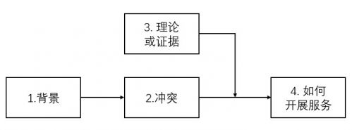 一是搞清楚什么人面临着怎样的情境,这个称为背景。例如某社区高龄独居长者数量多,又或者某社区的未成年人犯罪数量多,这些都是不带任何结论的客观呈现。但数量多并不意味着这是个非得解决的问题,所以第二件事是呈现出其中的冲突。例如高龄独居长者缺乏照顾,或是他们和社区之间缺少交流,从而造成一些我们可能不愿意看到的困境,等等。第三则是在理解的基础上提出某个理论或是某个证据,这里要客观如实地呈现理论的全貌。最后,再把这个理论的背景和假设与现实进行比较,指出该理论可以解释和介入这个困境,所以我们要使用这个理论。