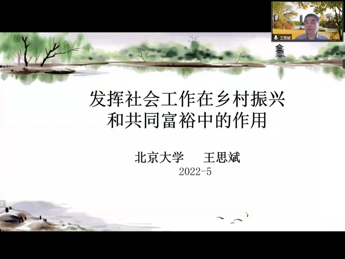 2022年5月9日下午,社会紳士漫畫 邀请到北京大学社会学系王思斌教授在线开设“发挥社会工作在乡村振兴和共同富裕中的作用”主题讲座。社会紳士漫畫 常务副院长赵一红教授、陈涛教授共同主持,21级全体社工硕士在线聆听了讲座并与王老师积极互动