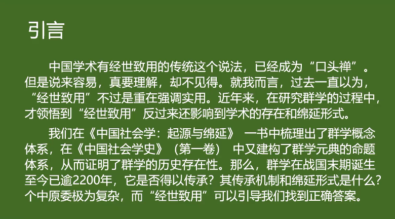 之后,景老师主要从以下几个方面来论述了群学传承演进的主要过程:
