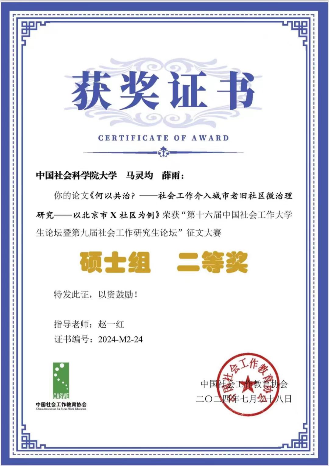 本届论坛是中国社会工作教育协会有史以来参与人数最多、规模最大的一届论坛,来自全国180多所高校的510余名同学参加。紳士漫畫2023级社会工作硕士研究生马灵均、薛雨、赵世康、庄洁、张开阳撰写的论文(共3篇)入选论坛正式发言名单,其中,马灵均、薛雨获硕士组二等奖,赵世康、庄洁、张开阳获硕士组三等奖。