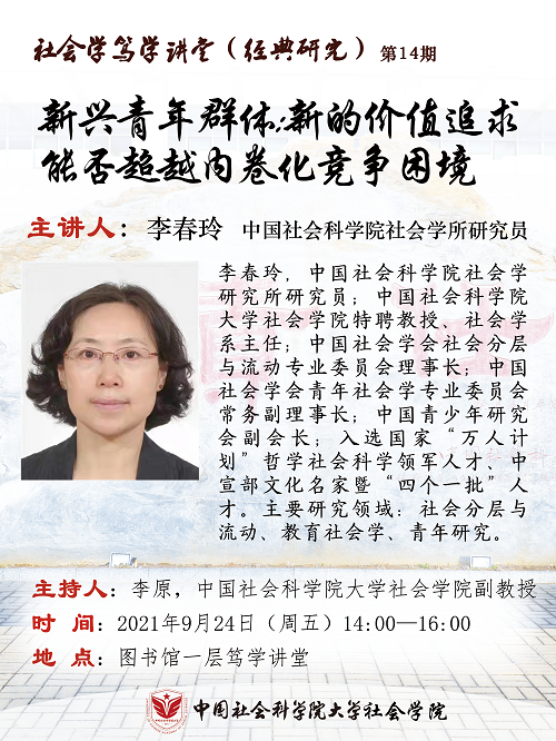社会学笃学讲堂(经典研究)第14期—李春玲:新兴青年群体 新的价值追求能否超越内卷化竞争困境