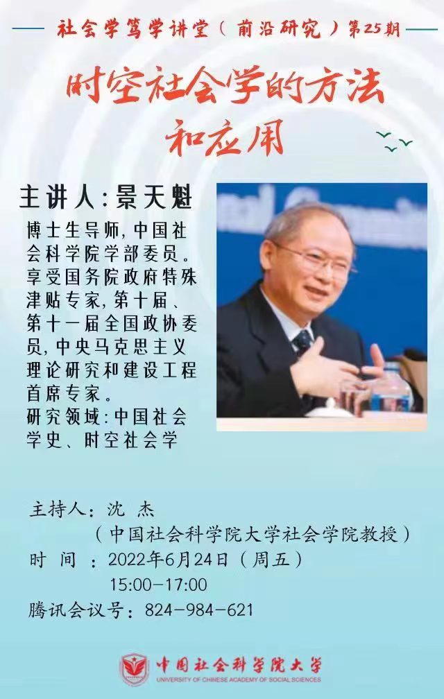 社会学笃学讲堂(前沿研究)第25期—景天魁:时空社会学的方法和应用
