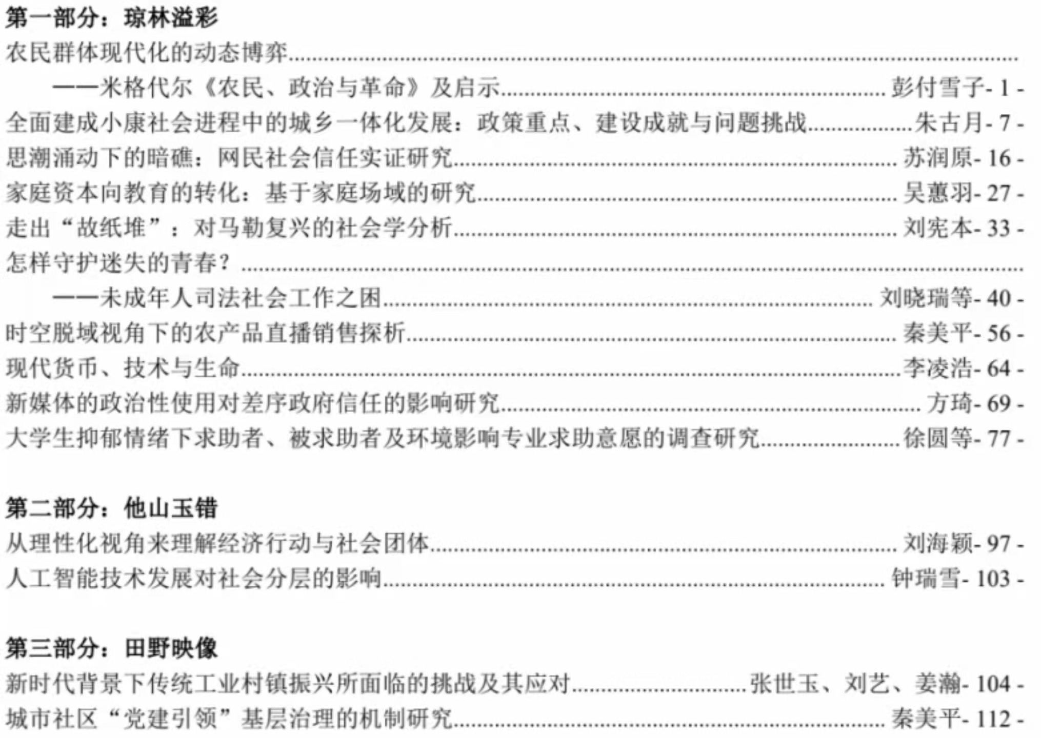 第一轮审稿任务结束后,审稿团队汇集各审稿小组的统一建议,将修改建议与退稿缘由反馈于投稿人。基于刊物策划的设想及指导老师的提议,编辑部针对部分专栏稿件进行了第二次征稿,并向投稿人反馈了审稿人员的建议。最终面世的首期《社研社语》共收录14篇学术文章,包括学生的优秀学术论文10篇,读书报告2篇,田野调研/访谈记录2篇。编辑部于11月底完成了责任编辑校对、设计排版并将创刊号付印。